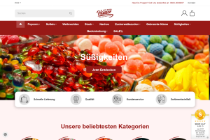 In unserem Shop bieten wir eine umfangreiche Auswahl an Süßwaren und Speisen, darunter Popcorn, Slush, Waffeln, Süßigkeiten, Nachos, Zuckerwatte, Lebkuchenherzen und Gummibärchen. Wir verbinden Qualität, Service und Kundenservice. Wir bieten einen Live-Chat und eine Express-Versandbearbeitung für Bestellungen, die bis 14 Uhr eingehen und am gleichen Tag versendet werden. Wir freuen uns, wenn wir Kinderaugen zum Leuchten bringen können.